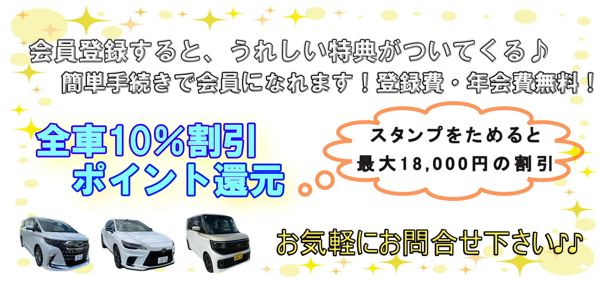 お得な特典が使えるトップレンタカー会員に是非ご登録ください